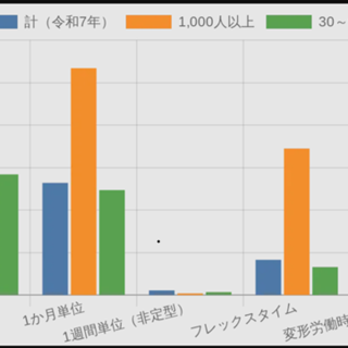 労働者に交替制や事業場外みなし労働時間制が導入されているか、変形労働時間制(1年単位、1か月単位等)、フレックスタイム制、裁量労働制を適用しているかなど、まずは、次の勤務形態選択からです。